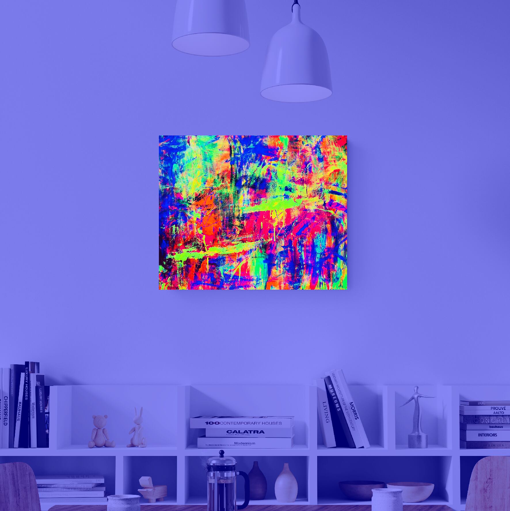 ・ご購入前に飾って頂く予定の場所の写真を送っていただければ、そこに絵をはめ込んだ合成(イメージ画像)をお送りし、確認して頂くことができます。